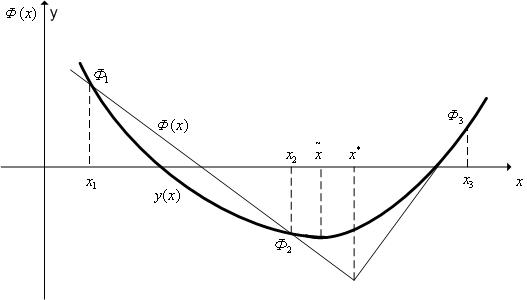 Рис. 3. К методу квадратичной аппроксимации (случай б). В качестве приближенного значения точки минимума Замечание. В силу условий Нижегородский Государственный Технический Университет