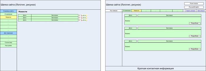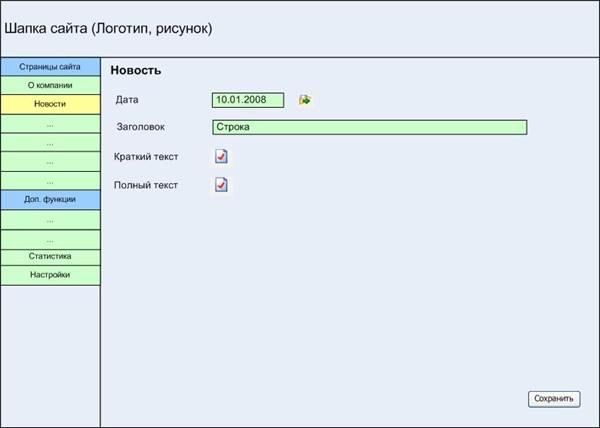 Рис. 3. Макет формы главной страницы административной части сайта.