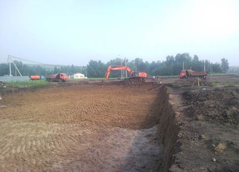 Для защиты окружающей местности от места строительных работ ставится ограждение в виде строительных бетонных плит. На въезде сооружается пропускной пункт. Строительство идет по способу открытых работ, погрузкой и транспортировкой вынимаемого грунта занимаются специализированная техника (КамАЗы, бульдозера, тракторы). Формированием и креплением откосов занимаются группы рабочих поверяющие уровень откоса и его горизонтальную выемочную площадь с помощью нивелиров и вышеперечисленной строительной техникой. Форма котлованов зависит от формы дома, которого запланировали построить на данном месте. Глубина котлована должна выровниться до «0 отметки» к горизонту на том участке, где запланирована постройка сооружения. Технология и способы ведения строительных работ ведутся по плану открытых горных работ минимизировать затраты на строительство: •Строгий расчет действий по ходу продвижения строительства способствует точному расчету строительного материала, задействованного в постройке сооружений, что в свою очередь ведет к экономии использующихся материалов в строительстве. •Для транспортирования материалов на стройплощадку используют длинномеры или грузовики КамАЗ, для высотного подъема строительных материалов используют башенные краны. •Передвижение техники по строительной площадке минимизировано – что сказывается на затратах топлива и на материальных затратах по строительной площадке.