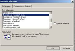 Слід також зазначити, що за допомогою команди Вставка/Объект теж можна вставляти об'єкти відповідного типу (рис.29).