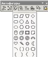 Для створення ілюстративних об'єктів, наприклад, ліній, прямокутників, овалів, многокутників та різноманітного вигляду заготовок (автофігур) Word надає спеціальні засоби, якими найзручніше користуватись через кнопки панелі інструментів Малювання (один із засобів її вмикання - натиснути на кнопку панелі Стандартная). Хоча у Word, на відміну від попередніх версій програми, є і стандартний спосіб доступу до цих інструментів - через команду меню Вставка/Рисунок/Автофигуры (рис.33). Слід також зауважити, що створювати автофігури можна лише у режимах Розмітка сторінки та Веб-документ.
