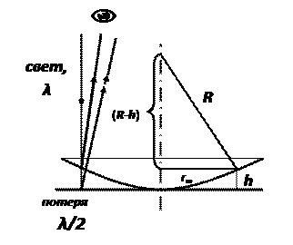 Если R – велико, то – b соизмеримо с λ. При нормальном падении света λ лучи света, отраженные от двух сторон воздушного клина создают в отраженном свете интерференционную картину.