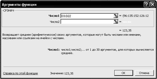 4.4. Щелкните левой кнопкой мыши на кнопке < ОК>. 4.5. На вкладке СРЗНАЧ установите параметры в соответствии с рис. 4.29.