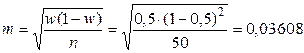 В этом случае надо знать предельную и среднюю ошибки выборки. Рассмотрим методику расчета вероятности осуществления заданной ошибки при различных способах формирования случайной выборки. Пример 1. По данным примера 1 в разделе 1 требуется определить, какая будет вероятность осуществления заданной ошибки, если численность выборки, характеризующей живую массу цыплят, увеличить вдвое, а численность выборки, характеризующей соотношение петушков и курочек в стаде уменьшить вдвое. В первом случае численность выборки должна быть 50, а во втором - 192. Расчеты проводят по формулам для случайной повторной выборки. Средние ошибки выборки: средней живой массы цыплят: