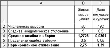 Отсюда нормированные отклонения: для средней живой массы цыплят: