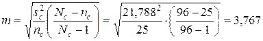 Пример 4. По данным примера 4 в разделе 1 необходимо определить, какая будет вероятность осуществления заданных ошибок, если число серий в выборке довести до 25, то есть увеличить на 25 %. Расчеты ведутся по формулам для серийной выборки. Средние ошибки выборки: среднего поголовья коров на ферме: