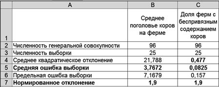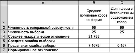 Отсюда нормированное отклонение: для среднего поголовья коров на ферме: