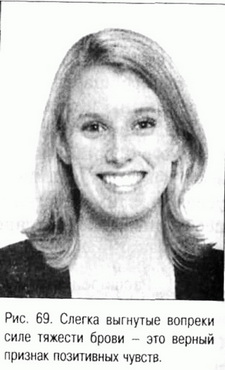 ви, отчего размеры глаз увеличиваются, и глаза начинают казаться больше (см. рис. 68—70). В дополнение к этому, некоторые люди способны значительно расширять апертуру глаз, раскрывая их как можно шире и добиваясь эффекта горящего взгляда. Широко распахнутые глаза обычно ассоциируются с удивлением или позитивными событиями. Кстати, это еще одна форма поведения вопреки силе тяжести, выражающая позитивные чувства.