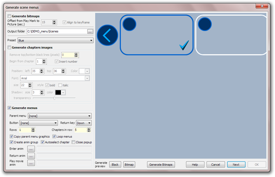 Generate chapter images – флажок генерирования файлов в формате PNG для меню, содержащих изображения эпизодов. Если автоматическая генерация изображений эпизодов не нужна, снимите флажок.
