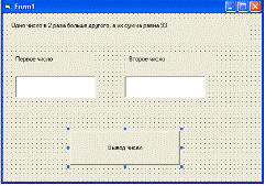 a = InputBox(" введите сторону квадрата", " площадь") Text1 = a S1 = a ^ 2 Text2 = S1 r = a / 2 S2 = 3.14 * r ^ 2 Text3 = S2 End Sub Private Sub Command2_Click() End End Sub 3. Разработайте проект, который находит площадь равнобедренной трапеции по ее основаниям и высоте. Трапеция должна быть нарисована. (S=1/2(a+b)*h)