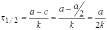 где k0 – константа скорости реакции нулевого порядка; t – время от начала реакции до достижения концентрации с; а - концентрация вещества А при t =0, с - концентрация вещества А в момент времени t. Размерность k 0 определяется выражением k 0 =w, поэтому Время полупревращения t1/2 - время, за которое концентрация исходного вещества уменьшается в 2 раза.