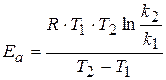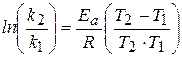 Это уравнение дает возможность, зная энергию активации и константу скорости при одной температуре, определить константу скорости при другой температуре. Или же, зная величины констант скоростей при двух температурах, можно рассчитать значение энергии активации.