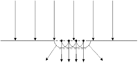 Принцип Гюйгенса: каждая точка фронта волны является источником вторичных сферических волн, огибающая которых дает положение фронта волны в последующие моменты времени. Примером интерференции волн являются стоячие волны. Стоячей волной называется картина, получающаяся в результате сложения двух равных по амплитуде и противоположных по направлению волн одинаковой частоты.