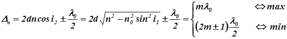 Таким образом, условие экстремумов при наблюдении интерференции в отраженном свете имеет вид: