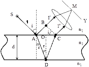 Итак, на прозрачную плоскопараллельную пластинку (тонкую пленку) толщиной