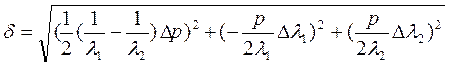 В лабораторной работе была вычислена погрешность измерений толщины кюветы №1. Для каждой пары значений λ 1 и λ 2 находилась δ по формуле