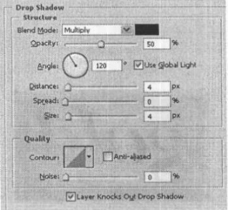 1.10. Модернизируйте результат, добавив к надписи небольшую тень. Для этого примените стиль слоя Drop Shadow (Внешняя тень): Layer • Layer Style • Drop Shadow(Слой • Стиль слоя • Внешняя тень) с настройками, показанными на рис. 11. Если изображение получилось недостаточно ярким, то подкорректируйте его с помощью команды Brightness/Contrast (Яркость/Контрастность), которая находится в том же меню, где и предыдущая. Итоговый результат представлен на рис. 12.