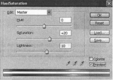 Рис 2. Настройки Hue/Saturation (Тон/Насыщенность) 2.9. Добавьте контраст. Для этого отлично подходит инструмент Brightness/Contrast (Яркость/Контраст) из той же группы Adjustments (Настройки) на рис. 3.
