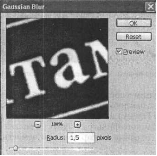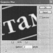 Рис. 1. Основа печати Рис. 2. Дополнительный канал Смягчите края, воспользовавшись фильтром Gussian Blur (Размытие по Гауссу) из набора Blur (Размытие). На рис. 3 представлено диалоговое окно данного фильтра. Радиус размытия следует установить таким, чтобы изображение, сохранив свою форму и читаемость, приобрело размытые очертания. Для изменения структуры штампа воспользуйтесь фильтром Halftone Pattern (Цветные полутона) из группы Sketch (Эскиз) или Оформление. В настройках данного фильтра (рис. 4) выберите размер образовывающихся структурных единиц, а также их контрастность. Не задавайте слишком большие значения, так как задача этого фильтра заключается в том, чтобы придать штампу неоднородность, а не исказить его. Установите значения настроек, равные 1.