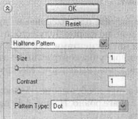 Рис. 3. Настройки фильтра Gussian Blur Рис. 4. Параметры фильтра Halftone Pattern (Размытие по Гауссу) (Цветные полутона) 2.3. Примените фильтр Stamp (Линогравюра): Filter • Sketch • Stamp (Фильтр • Эскиз • Линогравюра). Настройки приведены на (рис. 5). Этот фильтр необходим для того, чтобы сделать изображение грубее, а также для придания краям неровных очертаний. Значение Light/Dark Balance (Баланс света и тени) установите равным примерно 12-20, a Smoothness (Сглаживание, Смягчение) — 3.1.Примените еще раз фильтр Gussian Blur (Размытие по Гауссу), выбрав небольшой радиус действия, чтобы создать эффект потекших чернил (рис. 6).