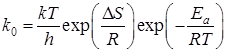 Сначала рассмотрим случай, когда превращение потенциального центра зародышеобразования в растущий зародыш является следствием присоединения к потенциальному центру единственной молекулы (или атома) продукта реакции. Если, например, речь идет о термическом разложении, то частота такого события k0 может быть найдена из теории активированного комплекса: