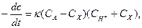 где СA и CH+ - начальные концентрации, соответственно ацетона и ионов водорода; Cx – концентрация ацетона, превратившегося за время t от начала реакции; t – время от начала реакции до данного измерения.