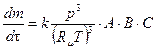 в этом случае скорость превращения вещества прямо пропорциональна давлению: Для бимолекулярной реакции: