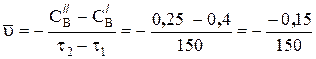 где Время может быть выражено в секундах, минутах, часах в зависимости от скорости протекания реакций. Скорость реакции всегда положительна. Знак минус имеет DСв/Dt, когда скорость реакции определяется по изменению концентрации одного из исходных веществ, а знак плюс, если скорость реакции определяется по изменению концентрации одного из продуктов реакции. Пример 1. Рассчитайте среднюю скорость реакции 2KJ + Вr2 = 2КВr + J2, протекающую в водном растворе, если исходная концентрация Вr2 составляла 0, 4 моль/л, а через 2, 5 минуты стала 0, 25 моль/л. Решение. Средняя скорость реакции рассчитывается по уравнению (1), в которое подставляются данные, приведенные в задаче