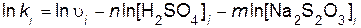 Аналогично при постоянной исходной концентрации тиосульфата натрия определяют порядок реакции по серной кислоте - тангенс угла наклона прямой, построенной в координатах