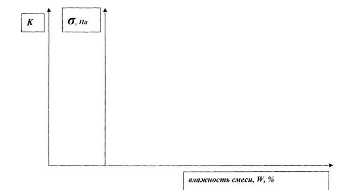 Таблица 1. Влияние содержания влаги в формовочной смеси на газопроницаемость и прочность материала песчаноглинистой формы.