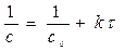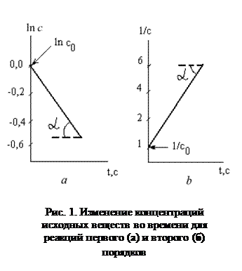 Единица измерения k [моль-1× л× с-1]. Кинетическую кривую удобно представить в координатах 1/ с-τ (рис.2б). Величина, обратная концентрации, растет во времени линейно.
