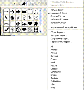 Шаг 1. Создайте новый документ в режиме RGB. Установите в качестве основного цвета нейтральный серый цвет. Выберите инструмент В строке Свойств щелкните на образце фигуры Из меню окна выберите команду Objects (Объекты). В появившемся диалоговом окне щелкните на кнопке Добавить, чтобы добавить выбранный набор фигур к стандартному.