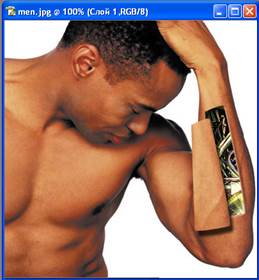 Шаг 15. Снимите выделение, нажав комбинацию клавиш < Ctrl+D>. В результате края отверстия в руке будут четко заметны.