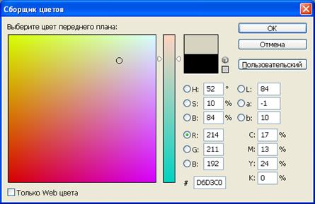 Шаг 1. Откройте исходное изображение newspaper.jpg. Добавьте новый слой. Сделайте круглое выделение с помощью инструмента Овальная область (нажмите и удерживайте при этом Shift, чтобы получить " правильный" круг, без линейных искажений). Шаг 2. Щелкните мышкой на цвете переднего плана. В появившемся окне выбора цвета (Сборщик цветов) выберите цвет со следующими цветовыми координатами: R=214, G=211, B=192 (или # D6D3C0). Залейтевыделенную область, снимите выделение.
