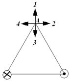+1) от нас 2) сверху вниз 3) на нас 4) снизу вверх --------------------------------------------------------------------------------------------------------------