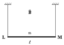 1) Ток в направлении L-M; сила Ампера – вверх 2) Ток в направлении M-L; сила Ампера – к нам 3) Ток в направлении M-L; сила Ампера – от нас +4) Ток в направлении L-M; сила Ампера – вниз -------------------------------------------------------------------------------------------------------------