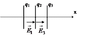 Решение. Средняя пластина, несущая заряд q 2, находится в электростатическом поле, созданном внешними пластинами с зарядами q 1 и q 3. Первая пластина, с зарядом q 1 в месте расположения средней пластины создает поле с напряженностью