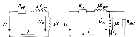 а) б) Рисунок 10 – Схема замещения обмотки с магнитопроводом без магнитных потерь (а) и с магнитными потерями (б) ЭДС рассеяния заменим падением напряжения на индуктивном сопротивлении рассеяния