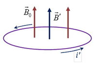2) собственным вращением (спином) электронов (спиновой магнитный момент) (рис. 2). Для любознательных. Магнитный момент контура равен произведению силы тока в контуре на площадь, охватываемую контуром. Его направление совпадает с направлением вектора индукции магнитного поля в середине контура с током. Так как в атоме плоскости орбит различных электронов не совпадают, то вектора индукций магнитных полей [1], созданные ими (орбитальные и спиновые магнитные моменты), направлены под разными углами друг к другу. Результирующий вектор индукции многоэлектронного атома равен векторной сумме векторов индукций полей, создаваемых отдельными электронами. Не скомпенсированными полями обладают атомы с частично заполненными электронными оболочками. В атомах с заполненными электронными оболочками результирующий вектор индукции равен 0. Во всех случаях изменение магнитного поля обусловлено появлением токов намагниченности (наблюдается явление электромагнитной индукции). Иными словами принцип суперпозиции для магнитного поля остается справедливым: поле внутри магнетика является суперпозицией внешнего поля