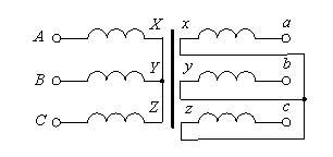 Обмотки трехфазных трансформаторов соединяются в звезду или в треугольник в зависимости от номинального фазного напряжения обмоток и напряжения внешней сети (источника для первичных и приёмника для вторичных обмоток). На рис.3 приведена схема соединения обмоток звезда/звезда с нейтралью (первичные обмотки соединены звездой – трехпроводная система, вторичные – звездой с выводом нейтральной точки – четырехпроводная система). На рис.4 приведена схема соединения обмоток звезда/звезда (первичные и вторичные обмотки соединены звездой и подключаются к трехпроводным системам). Для оценки характеристик и основных параметров схем замещения трансформатора выполняют опыты холостого хода и короткого замыкания. На рис.5 приведена схема проведения опыта холостого хода однофазного транс-форматора. По результатам Рис.5 Опыт короткого замыкания проводится при замкнутых накоротко выводах вторич-ной обмотки трансформатора (на рис.5 вместо вольтметра pV2 устанавливается пере-мычка, замыкающая накоротко вторичную обмотку). По результатам этого опыта определяют параметры схемы замещения, связанные с электрическими потерями в обмотках при изменении нагрузки. Свойства трансформатора при различной нагрузке оцениваются его внешней характеристикой – зависимостью U2(I2). При активно-индуктивной нагрузке при увеличении I2 напряжение U2 падает по причине увеличения электрических потерь в обмотках. При ёмкостной нагрузке могут сказываться резонансные явления (xL об-моток и xC нагрузки) напряжение U2 может возрастать при увеличении I2.