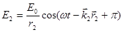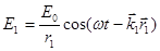 Решение: Рассмотрение ведём в некоторой точке Р, расстояние до некоторой L> > l, Напряжённость поля Е0=Е(r=1м)=1м, ω =2π с/λ - частота излучения, k=2π /λ - модуль волнового вектора(волновое число). В точке Р: т.к излучатели работают в противофазе. Или в символическом виде Пользуясь методом комплексных амплитуд, находим Т.к. L> > l, то Тогда Интенсивность в точке Р пропорциональна Таким образом, В соответствии с правилами тригонометрии и r1-r2=∆ r получим