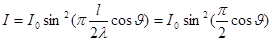 С учётом коэффициента пропорциональности можем записать 1. При l=λ /2 Качественный анализ по точкам даёт: I=0 при Откуда I=I0 при 2. При l=λ Качественный анализ по точкам: I-0 при I=I0 при