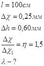 Ответ: Задача 2 /Ир5.73/ В опыте Ллойда световая волна, исходящая непосредственно от источника S(узкой щели), интерферирует с волной, отражённой от зеркала З. В результате на экране Э образуется система интерференционных полос. Расстояние от источника до экрана L=100см. При некотором положении источника ширина интерференционной полосы на экране ∆ χ = 0, 25 мм, а после того, как источник отодвинули от плоскости зеркала на ∆ h=0, 60мм, ширина полос уменьшилась в η =1, 5 раза. Найти длину волны света.