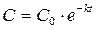 После интегрирования выражения (7) по времени от 0 до t и по концентрации от C0 до C получим: