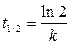 Найдем период полураспада, т.е. время, за которое исходное вещество прореагирует ровно наполовину, для реакции первого порядка t1/2. Из (8) следует, что: