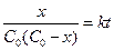 или, если через x обозначить количество вещества, прореагировавшего к моменту t, то С0 – С = x или