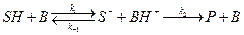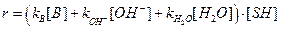 При постоянных pH и концентрации катализатора это уравнение описывает реакцию первого порядка. Аналогичное уравнение для общего основного катализа выглядит следующим образом: