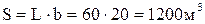 Приклад. На складі знаходиться концентрат насипною щільністю ρ = 950 кг/м3. Розміри складу: довжина L = 60м, ширина b = 20м, висота h = 5м. Визначаємо площу і об’єм складу: