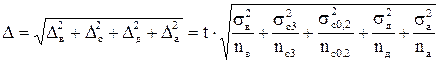 Для використання приведеного рівняння необхідно встановити середньоквадратичне відхилення на різних стадіях випробування і, задаючись відповідним коефіцієнтом довірчості, визначити граничну похибку випробування. Неоднорідність або середньоквадратичне відхилення зольності проб визначається по формулі: