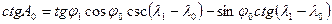 откуда Долгота λ 1может быть найдена как с использованием уже рассчитанной широты φ 1, так и независимо от φ 1. Рассмотрим независимое решение, которое выполняется с помощью теоремы котангенсов.